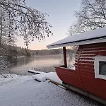 Den strandnära villan Torppa Jaervenrannalla Petaajarvi erbjuder bastu för gästernas avkoppling.